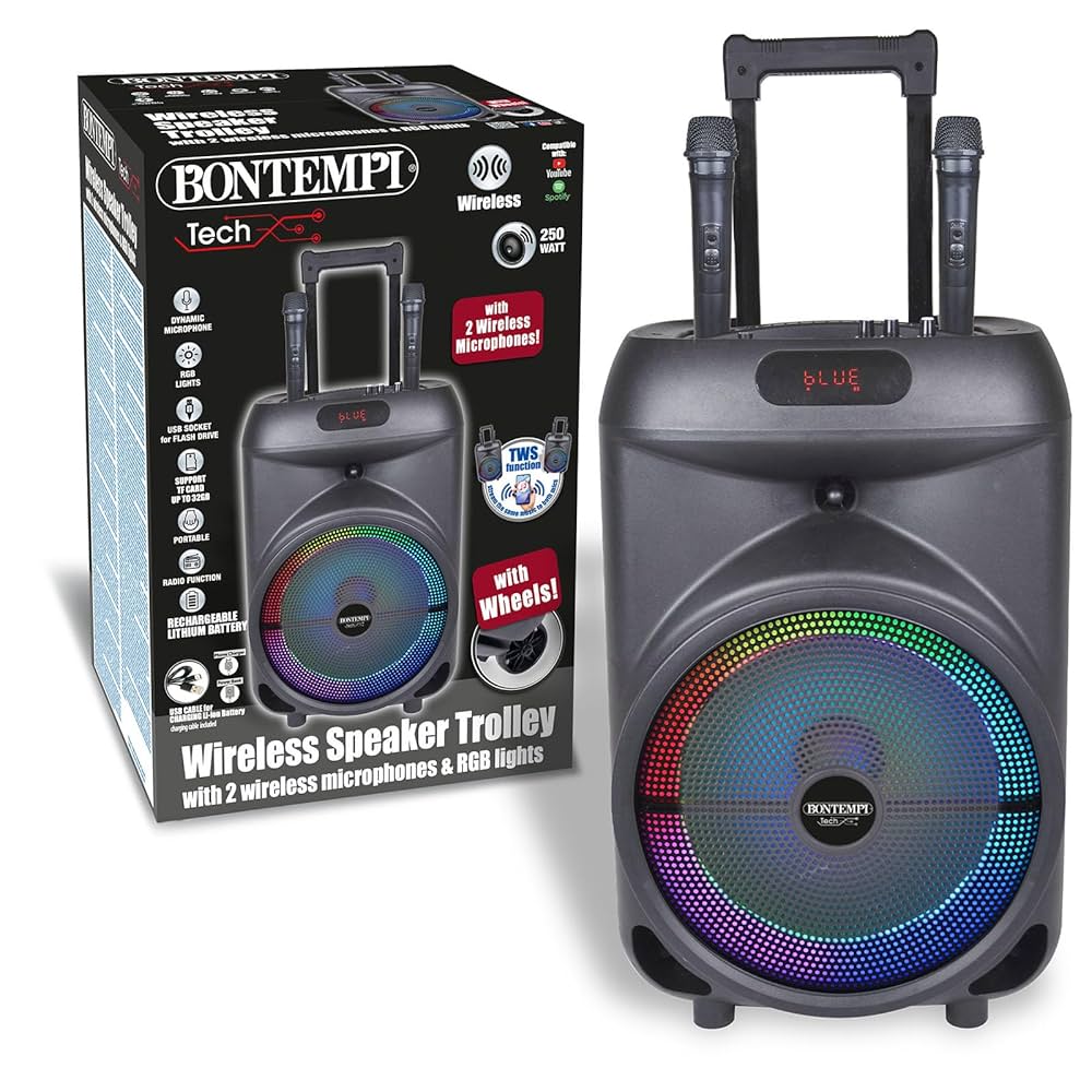 Tipologia Cassa acustica wireless trolley con 2 microfoni senza filo, luci RGB, telecomando e display