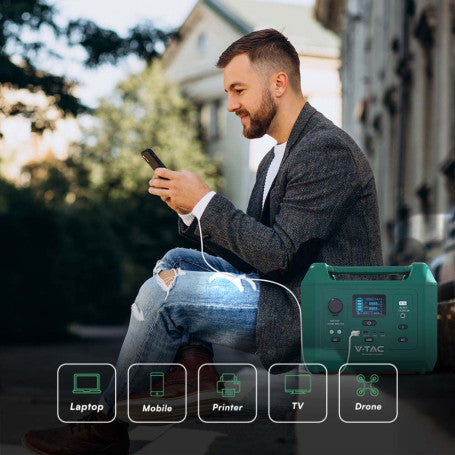 La Power Station V-Tac VT-303N SKU 11625 è un'accumulatore portatile al litio con una capacità massima di 288Wh. Con un output massimo di 300W è ricaricabile tramite pannello fotovoltaico (non compreso) o rete elettrica. È inoltre compatibile con pannello solare pieghevole V-Tac SKU LED11564 e pannello solare pieghevole V-Tac SKU LED11446