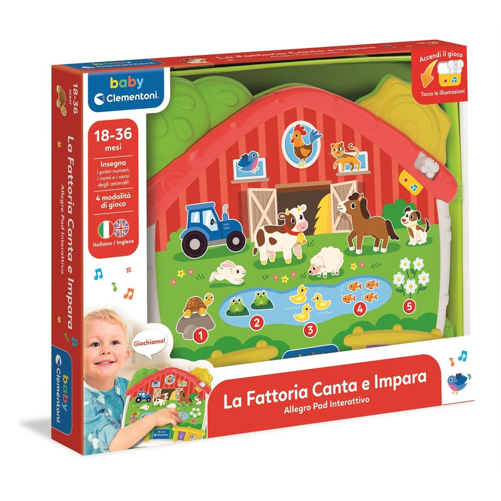Allegro pad interattivo a forma di fattoria che insegna ai bambini i primi numeri, i nomi e i versi degli animali. Con tante canzoncine e 4 modalità di gioco per stimolare linguaggio, memoria e coordinazione. Ideale dai 18 ai 36 mesi.