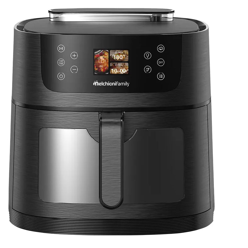 Cucina più leggero con la friggitrice ad aria da 8 L Melchioni DORA: calore circolante ad alta velocità per risultati croccanti fuori e morbidi dentro, con poco o niente olio. Ideale per famiglie e porzioni abbondanti.