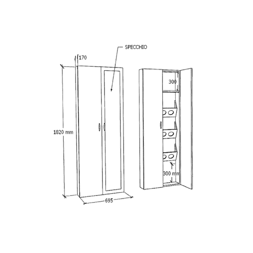 Dimensioni (L × P × H) 69,5 × 17 × 182 cm