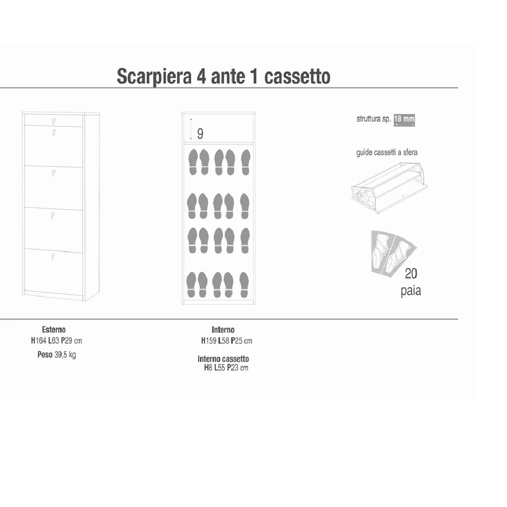 SCARPIERA KIRI 4 ANTE E 1 CASSETTO 20 Paia