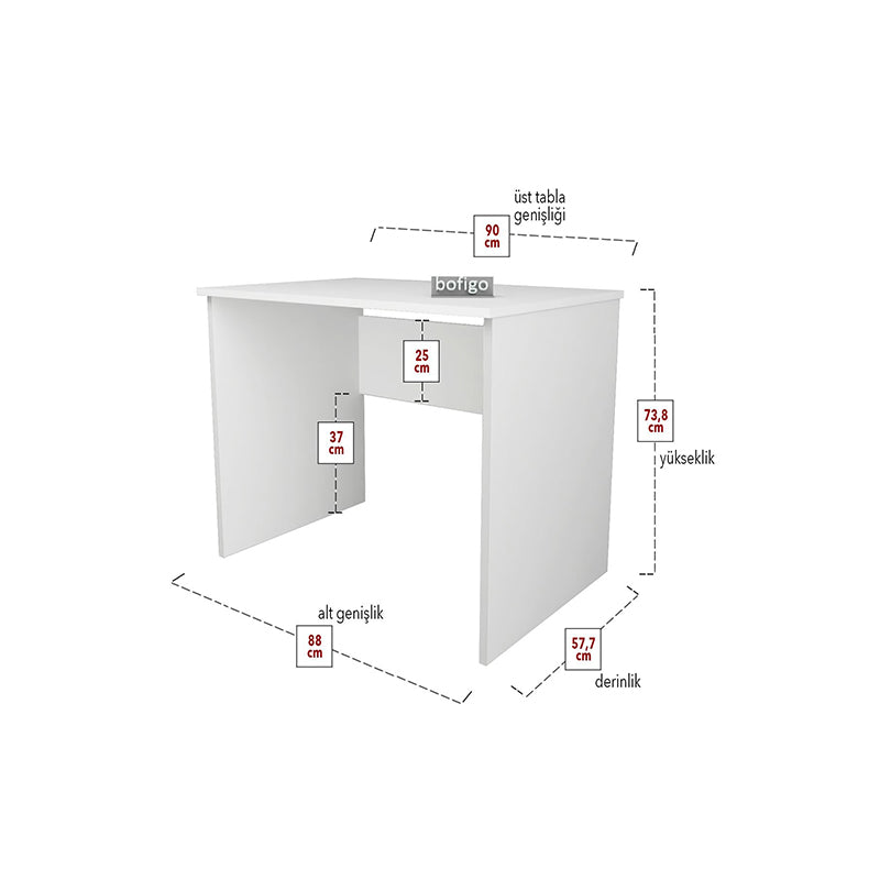 Le dimensioni del prodotto sono condivise in dettaglio nelle immagini. Gli oggetti per scopi visivi non sono inclusi nel prodotto. Bofigo Study Desk aggiunge eleganza alla tua casa grazie alla sua facilità d'uso e all'aspetto moderno.