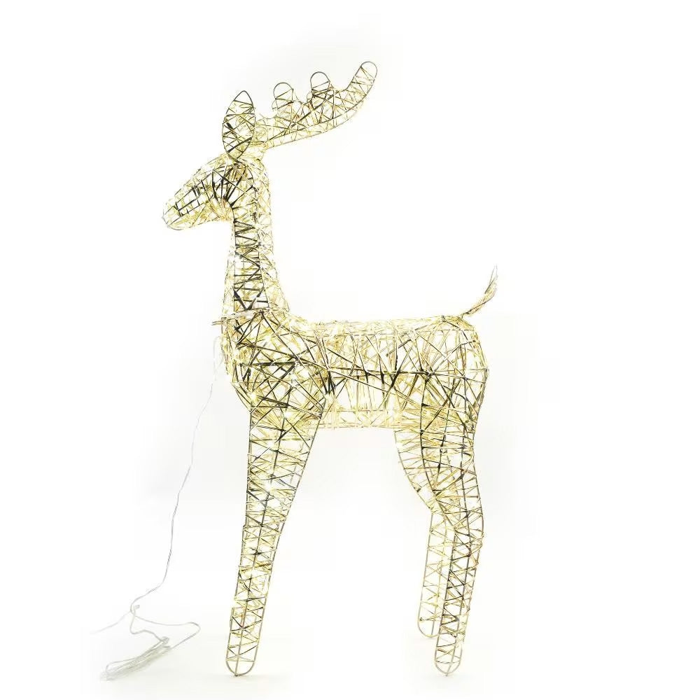 Raffinata renna decorativa luminosa con struttura intrecciata e luci LED bianco caldo. Perfetta per creare atmosfere natalizie eleganti sia in ambienti interni che esterni.