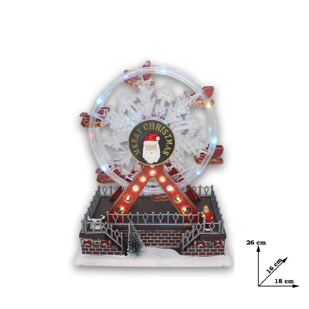 Ruota panoramica natalizia con luci LED e Babbo Natale, una decorazione scenografica che dona magia e movimento ai tuoi ambienti durante le feste. Perfetta per tavoli, vetrine o angoli natalizi.