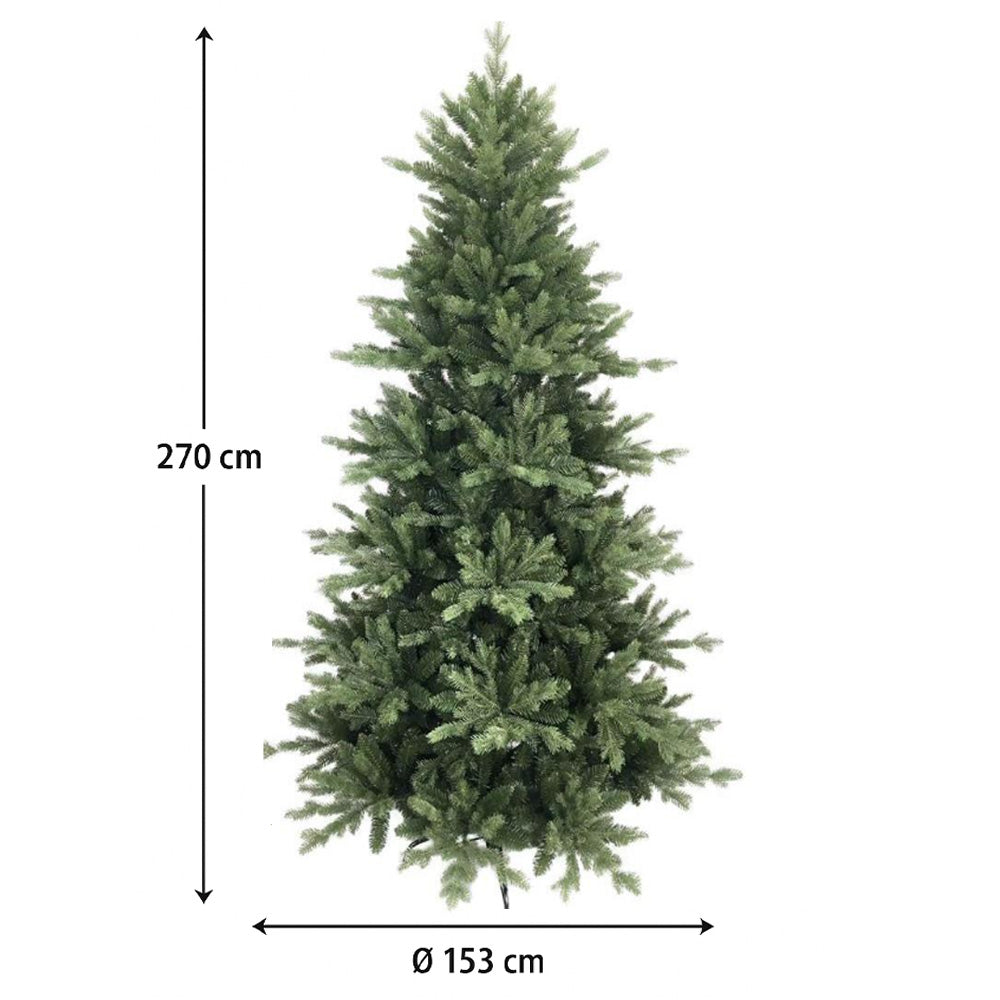 Albero di Natale Artificiale Yosemite 270 cm dal design realistico, con diametro di 153 cm e 2018 rami folti e rigogliosi. Ideale per chi desidera un Natale elegante e naturale senza rinunciare alla praticità.