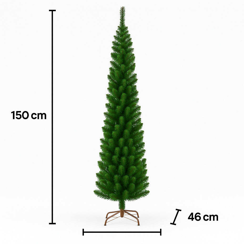 Albero di Natale Norway Slim 150 cm, dal design slanciato e realistico, Ø 46 cm e 241 rami folti. Perfetto per chi ha poco spazio ma non vuole rinunciare all’atmosfera natalizia.