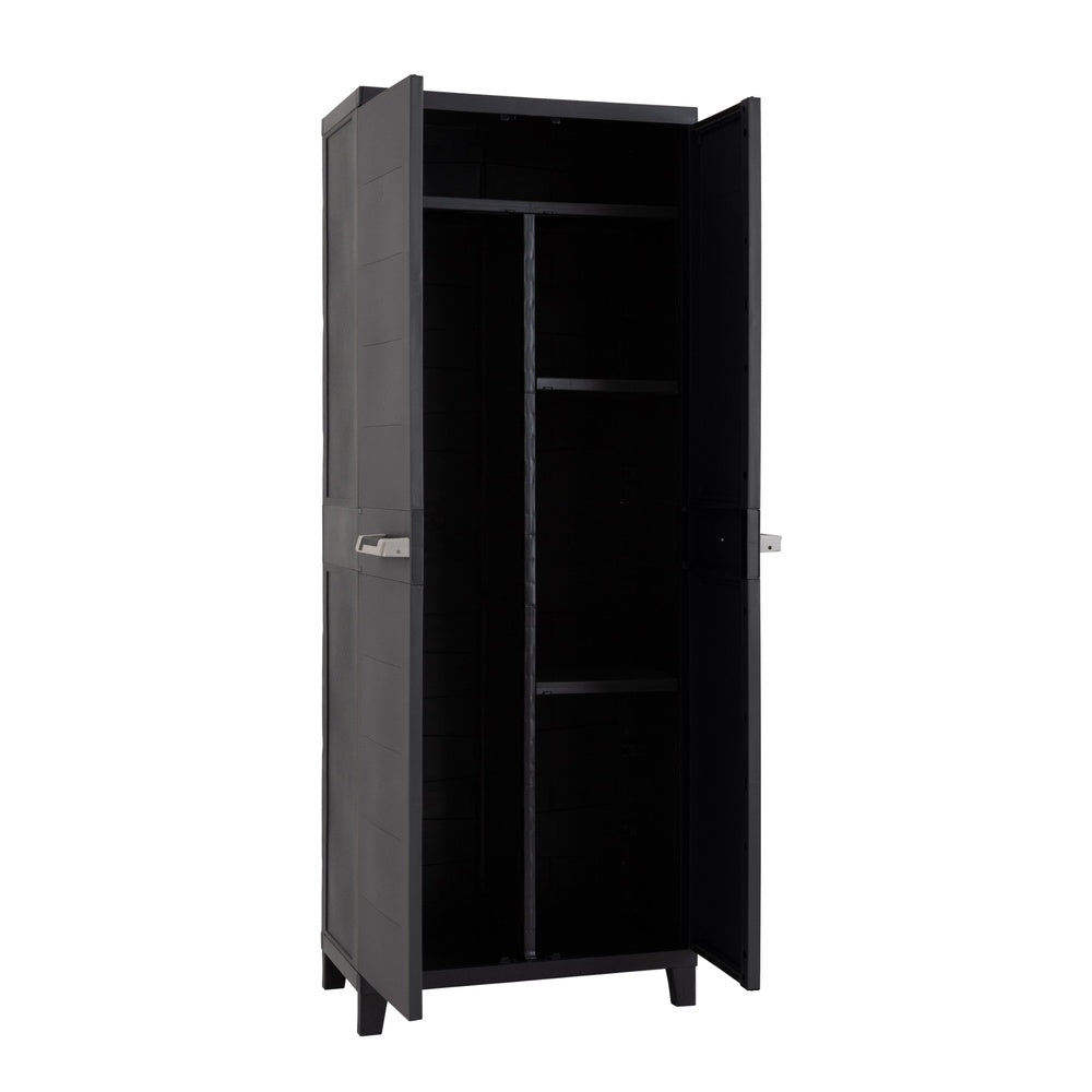 L’armadietto portascope Prime di Toomax, in colore Antracite, è una soluzione compatta e funzionale per organizzare scope e utensili per la pulizia. Dotato di due ante, ripiani interni con blocchi di sicurezza e piedini rialzati, è realizzato in plastica resistente e facile da pulire, ideale per ambienti come garage, cantine e ripostigli.